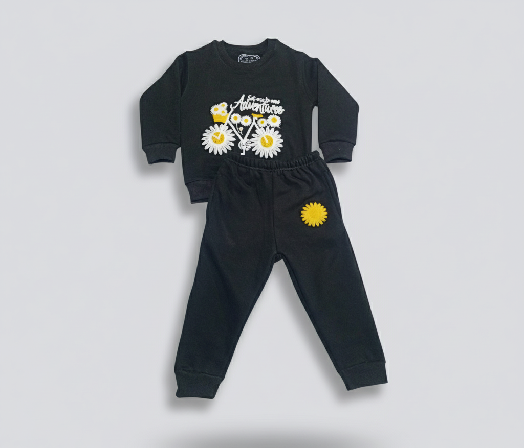 Elevate your casual game with this stunning black flower tracksuit that's equal parts comfort and style. The eye-catching floral design adds a pop of personality to your everyday wardrobe, while the relaxed fit keeps you feeling effortlessly chic. Perfect for lounging at